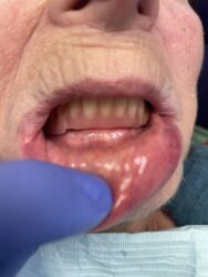 So if you were able to put locators on there and get rid of the bar and the new one snaps on and fits well, then the gap should be an easy fix where you can just do a reline of the denture and have the lab correct it so that you can have proper tissue support with no gaps. Again, when you do this kind of thing, I would always communicate to…