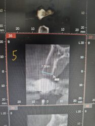 She has a severe deep bite and bites into the incisive papilla with the lower incisors. She usually postures forward and when you tell her to bite she’s on the incisal edges.