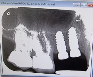 Sorry if this is a double post. I was wondering if this case should be better splinted or with separate crowns. I did look at the research and it seems splinted crowns are better. But I’m just worried as there is already bone loss around the mesial implant would it be better to do separate crowns so she can clean it better