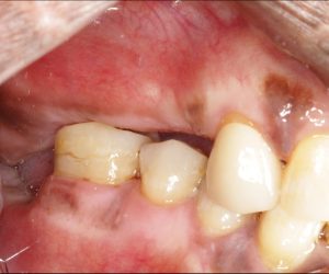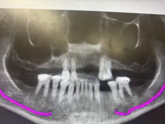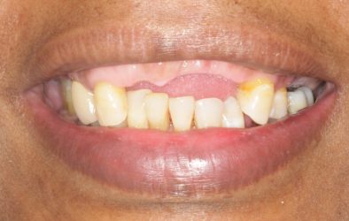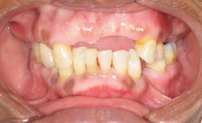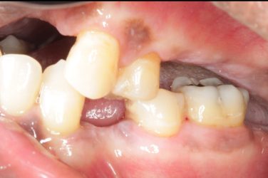 This patient wants implants. We just finished treating her periodontal disease and she is ready for the next phase, however, she has severe bite collapse. In addition, she has uneven ridge in the upper anterior, which would make it challenging esthetically. I asked her dentist to make her a partial denture but the patient kept going back…