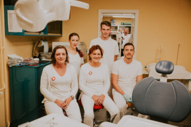Anyway, we are a small clinic, my mum is the boss and the two of us work there full time, my little brother is working part time and my dad used to work here as well part time (yes, we are all dentists), but retired two years ago. Slovenia is a small and pretty good country to live in, of course since we were once part of communist Yugoslavia we are still struggling with overcoming this mentality and replacing it with a more contemporary one. It was not bad at all, but for educated people, especially if they had opinions, it was not really a place to prosper. Of course if any of you visit anytime, do not hesitate to contact me as we are very hospitable and like to feast with friends (even if they are unknown at this point :D). The photo was taken some time ago and has the whole team (including two photobombers in the back). Our clinic is in my parents’ house and we do everything from hygiene and restorative to ortho and major implant surgery and since a lot of our patients are friends or family and I meet a patient almost every day as I walk home, we really focus on patient satisfaction, because we literally have to look them in the eye 😀